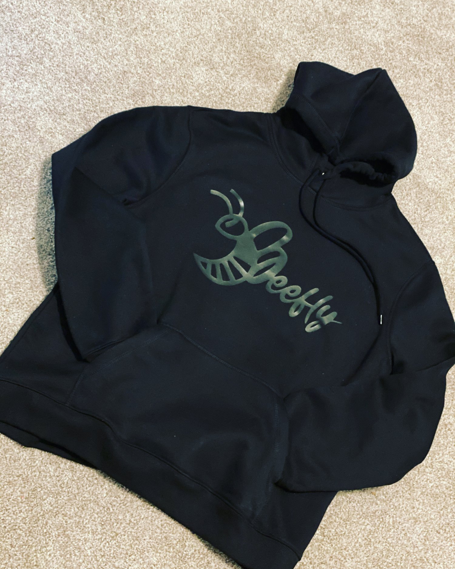 Stylish black hoodie with bold black BeeFly logo